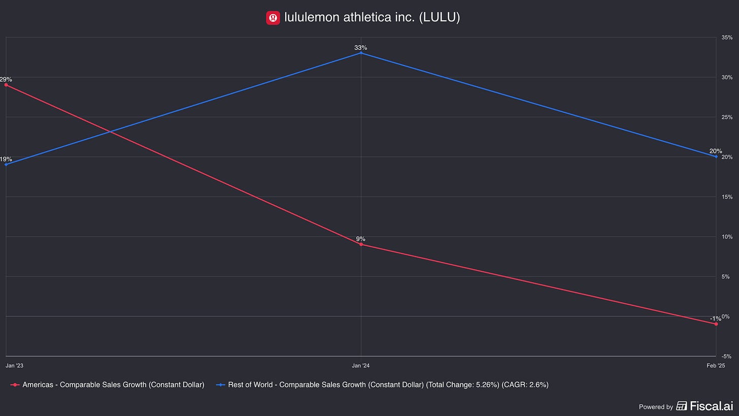 In the North American business, lululemon was forced to discount product to clear slow-moving inventory. For a brand built on pricing power and scarcity, this is a red flag.