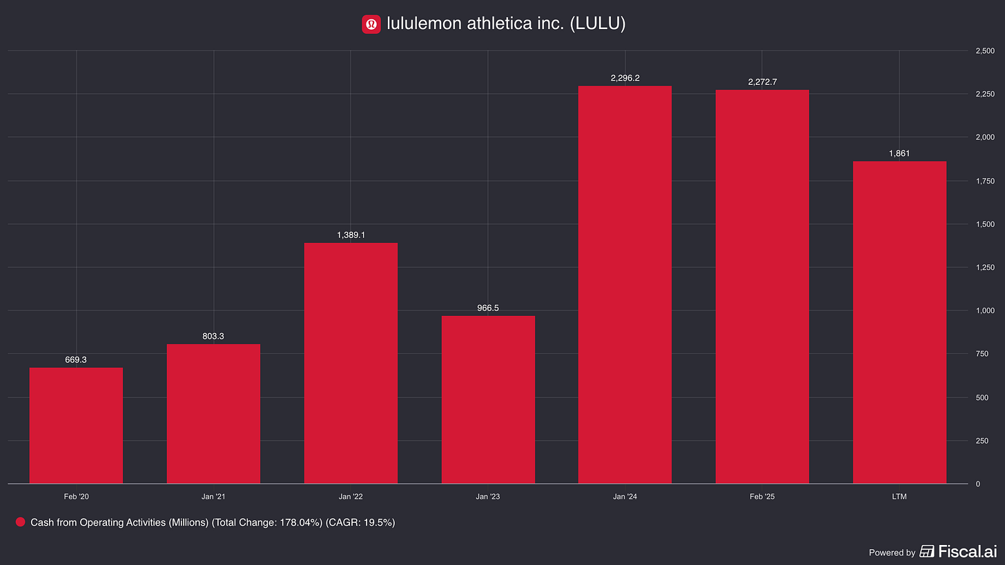 Despite the challenges, lululemon continues to generate copious amounts of cash.