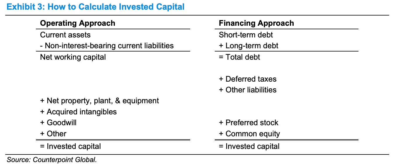 The denominator is Invested Capital, which represents the capital employed in the company’s core operating activities: