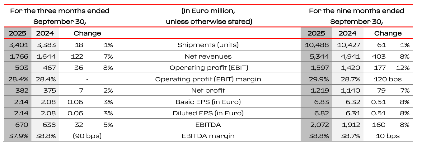 In Q3 2025, total shipments were largely flat year-over-year at 3,401 units. Crucially, despite this flat volume, net revenues grew by a robust 7.4% (9.3% at constant currency) to €1,766 million. This performance confirms that the primary lever for revenue and profit expansion is not volume, but mix and personalization.